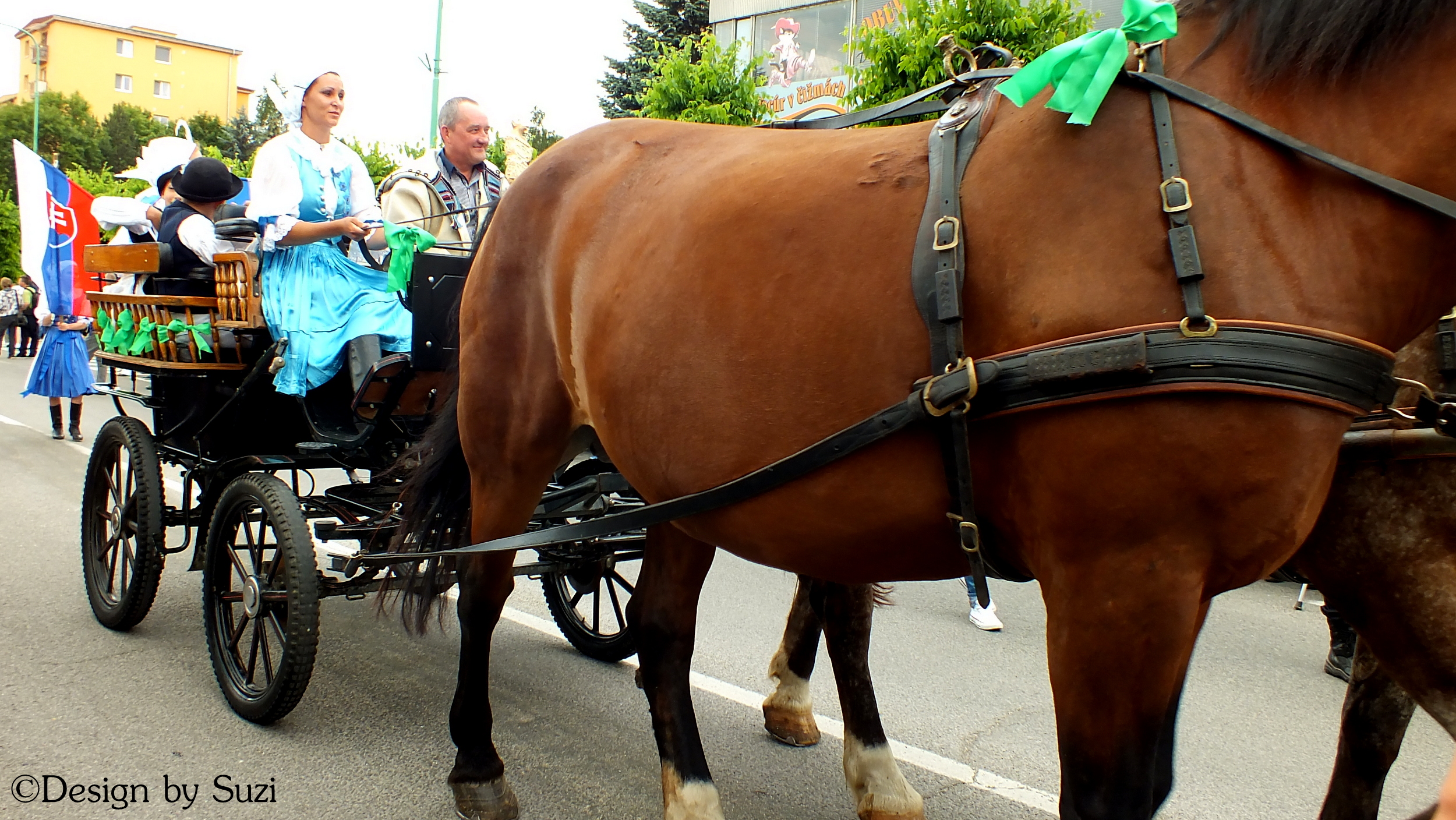 Pred pol jedenástou sme sa vybrali na jarmok a prehliadku krojov. Tajne som dúfala, že budem mať pokoj pri fotení ako minulý rok, ale zavadzali autá a ľudia mi to tiež neuľahčovali. Nádych-výdych a nejako som to nakoniec predýchala. Mali však súbory nejaké divné rozostupy alebo my sme stáli práve v nejakom hluchom mieste, lebo tancovali čoraz ďalej od nás. Podarilo sa mi však zachytiť aspoň zopár detailov a tu je prehliadka vo fotkách a na konci prvej polovice vo videu (prepnúť do HD). Keď sa kurzorom nastavíte na obrázok, ukážu sa vám názvy.