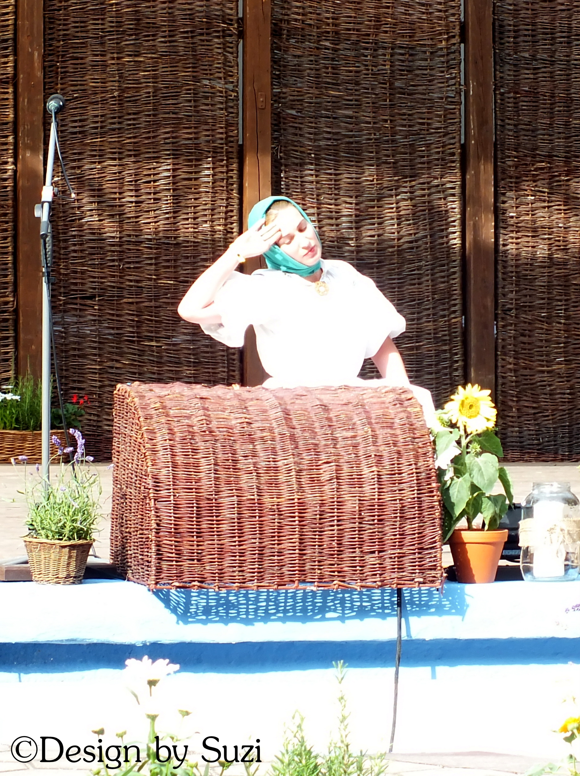 Maľovky na stenách, áno, sme na ceste do amfiteátra. O vláčiku som tento rok ani neuvažovala, aj tak by sa nám to zase nepodarilo a ušetrila som si nervy :-D. Predo mnou sedela tetuška v čepci, bohužiaľ neviem, kam patrila. K tomu trochu z výzdobu a dvaja komici, ktorí sprevádzali programom a venovala som im aj malý priestor vo videu :-). Tento rok boli aj menšie vystúpenia a jedno je aj na fotke. Na konci je krátky zostrih aj z vystúpení v amfiku (prepnúť do HD).