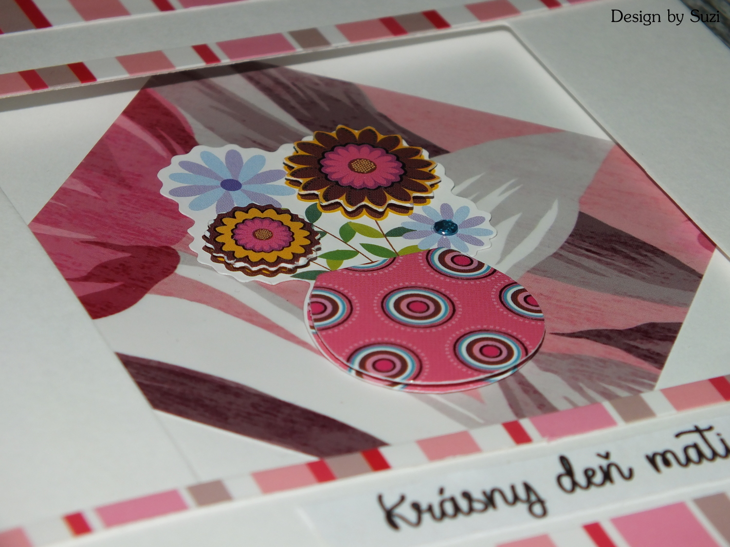 Na vrchnej strane som vyrezala štvorcový otvor, narezala som si prúžky a oblepila okraje. Následne som dovnútra nalepila do šikma štvorec (tiež z tašky) a nalepila 3D kvietkovú nálepku. Potom už len stačilo na samolepiaci papier vytlačiť text, vystrihnúť vlajočku, nalepiť a pohľadnica bola na svete. Miesto nálepky by som pokojne mohla použiť aj niektorý štvorček z tašky na obrázku vyššie, ak by som nemala nálepku.